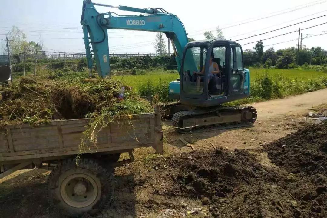 8月14日,六草屋村动用挖机1辆,运输车辆2辆,人员22人,清理沟渠50米,清理乱搭乱建1处,清理砂石砖块29车。