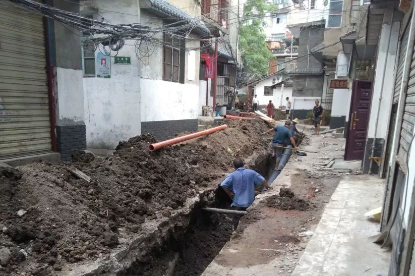 8月14日,九曲巷目前正在进行地下管网铺设,部分地面管网铺设已完成。