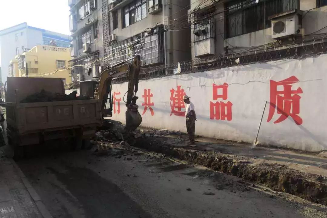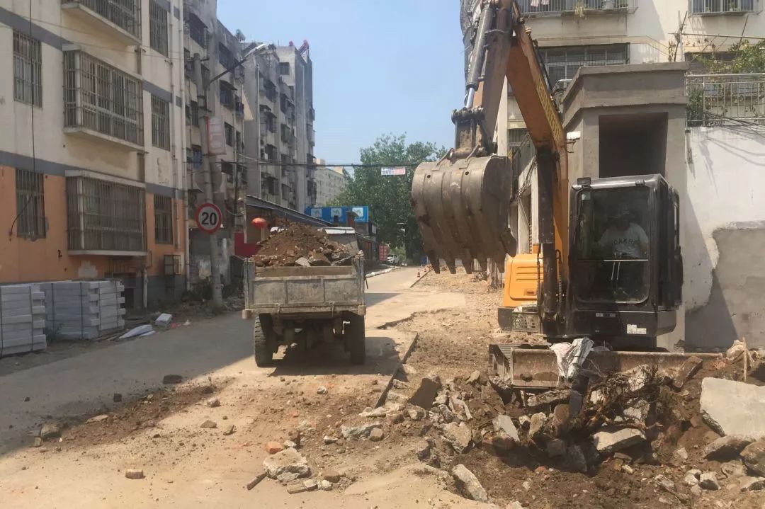 8月14日,校场巷目前正在进行地面开挖,为预埋地下管网做相关准备工作。