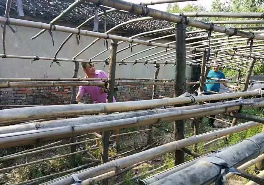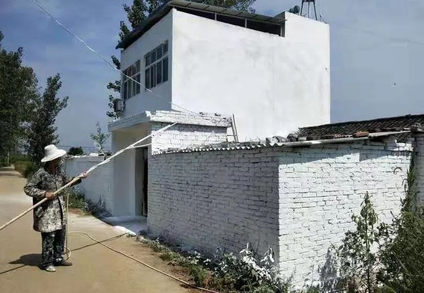 厉山镇铁路沿线北岗社区墙体立面粉刷和换顶工作正在进行中。