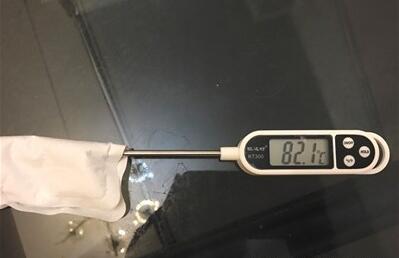 6款暖宝宝样品模拟日常使用的环境进行测试,一款样品最高温度可达82.1℃。