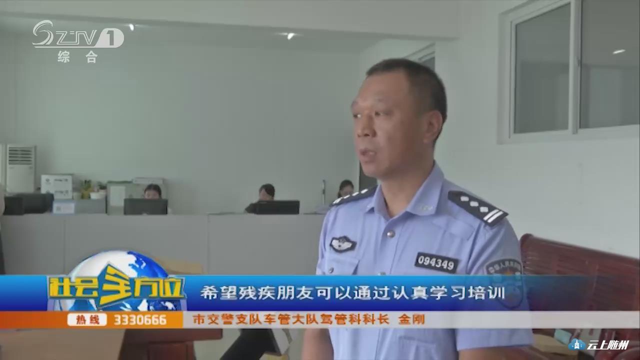 【采访】市交警支队车管大队驾管科科长 金刚:考试方面,我们在法律规定的范围内,我们将给最大的支持,目前考试环境还有待进一步的改善,我们下一步将尽最大的努力,以最快的进度,来提供优良的考试环境。我们将严格把关,希望残疾朋友可以通过认真学习培训,合法地取得驾驶执照。