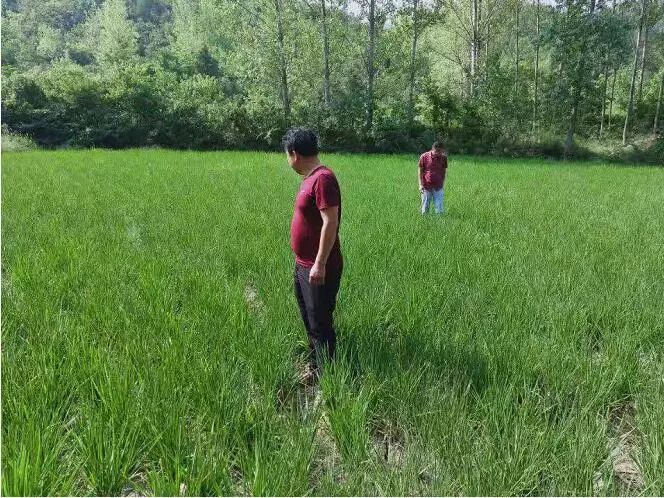 厉山镇党政领导到双寨、明华等村查看受灾水稻,并解决村民生活用水困难。