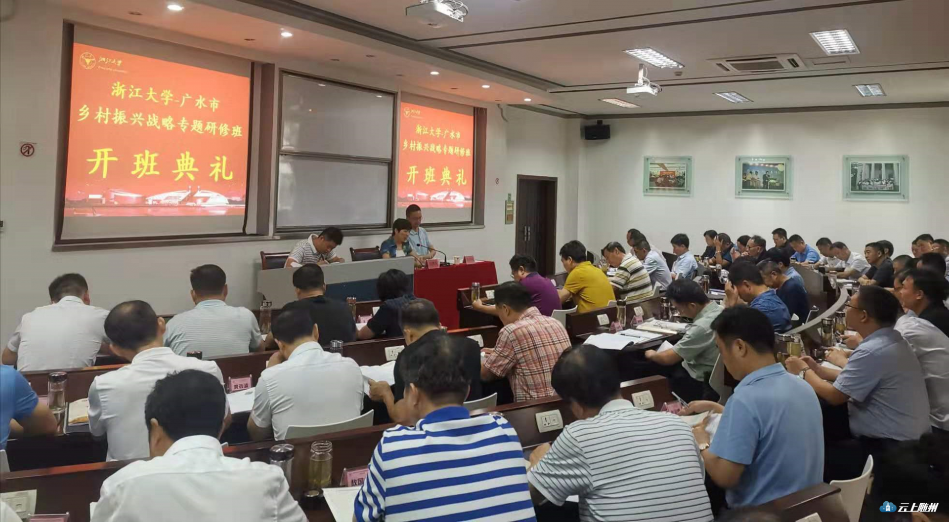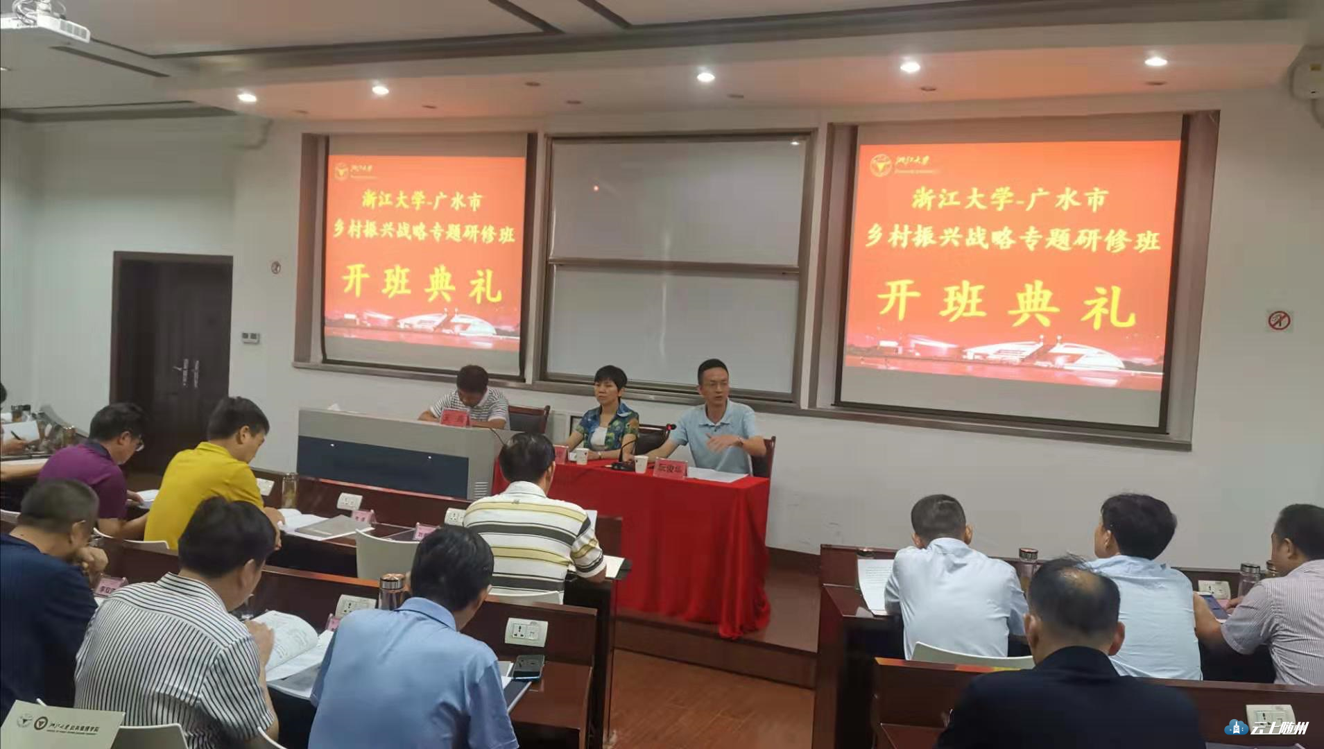 8月19日上午,浙江大学一广水市“乡村振兴战略”专题研修班在浙大公共管理学院开班。此次培训学习的主要目的是全面、系统地学习习近平总书记关于做好“三农”工作的重要讲话,以及关于乡村振兴的重要指示,深入了解乡村振兴战略的目标任务、方法路径、保障措施等,学习借鉴浙江经验,指导推动广水实践。