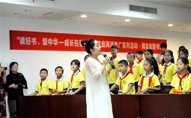 在长江读书节领读者秦海群及其海声群诵吟唱队志愿者的古诗词吟唱活动环节,随县留守儿童与来自华中师范大学附属华侨城小学的学生们一起,感悟文字的魅力。