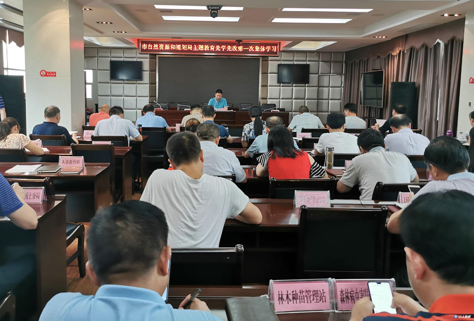 8月19日下午,市自然资源和规划局组织开展“不忘初心、牢记使命”主题教育先学先改第一次集体学习,市局机关全体干部职工、直属单位负责人80多人参加。