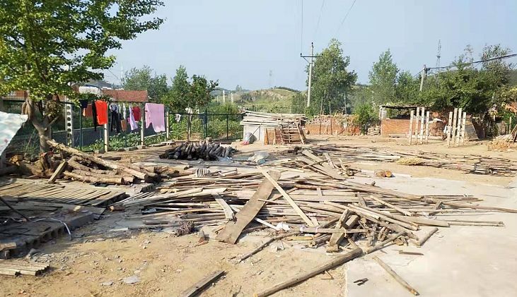 殷店镇拆除铁路沿线的香菇棚。