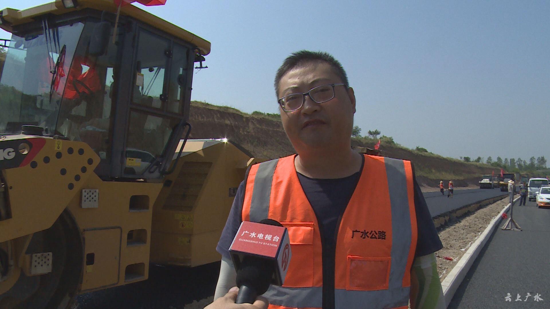 【同期声】107国道四标路面工程负责人 朱长征:“107国道路面改扩建工程第四标段全长10.5千米,我们自8月12日开工以来,遭遇了连续高温天气。为保证工程顺利进行,我们顶高温、冒酷暑,每天早晨5点半组织人员开始施工,一直持续到晚上7点。该工程将在9月底建成通车,为祖国70华诞献礼。”