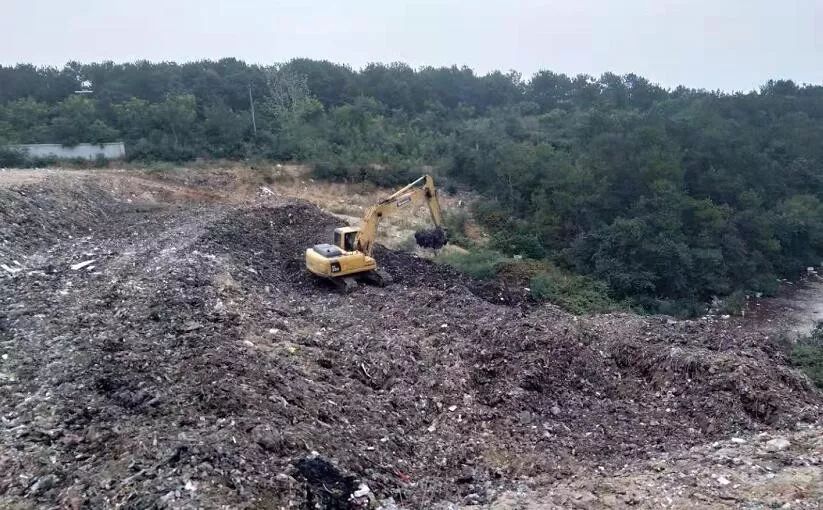 殷店镇垃圾填埋场封场整形中。