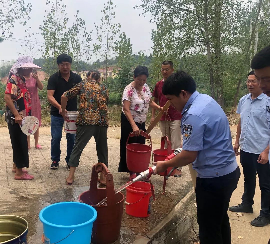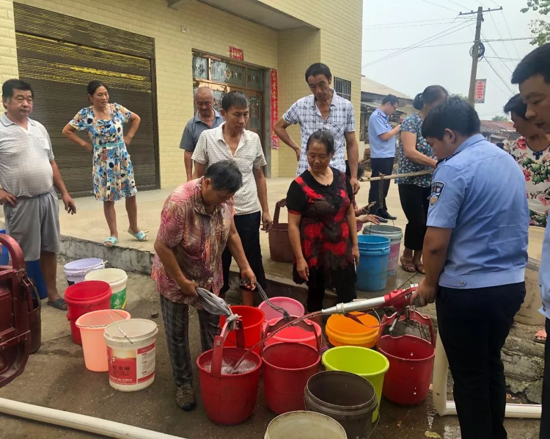澴潭镇派出所组织人员到廖寨村十组为群众送水。