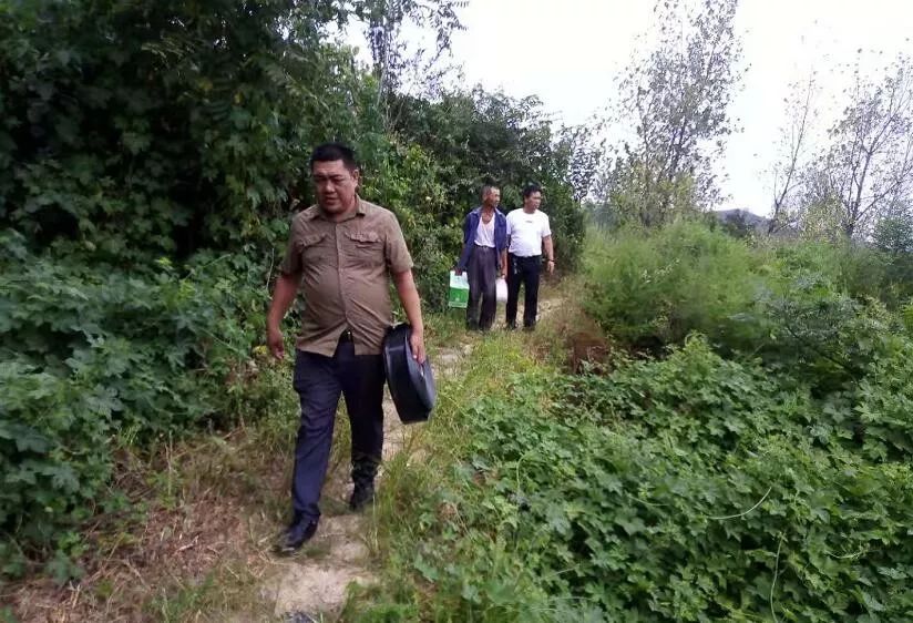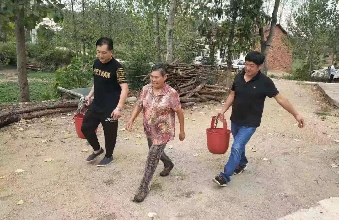 草店镇三道河村干部给贫困户送抗旱设备。