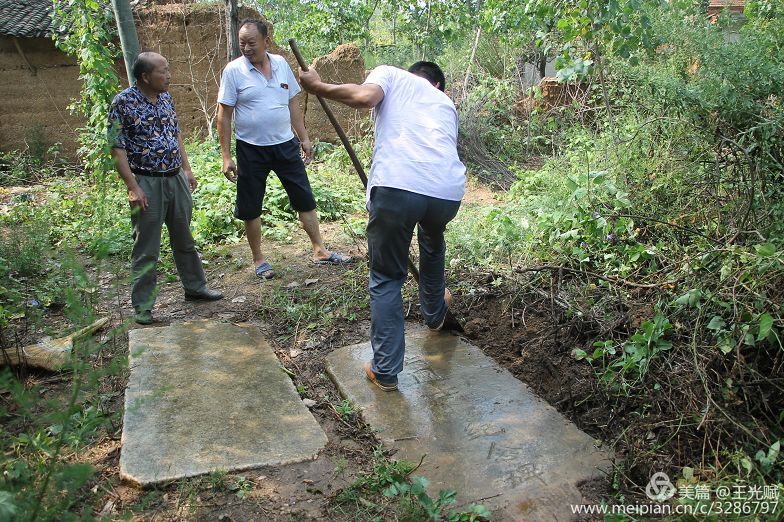 该村党支部书记陈真说:“这样的石碑一共有4块,当年都是立在金字店一所古庙门口,上世纪七十年代,当地村民修水渠的时候将其中两块大石碑抬过来当桥,另外2块小石碑在上世纪八十年代被文物贩子盗走了,两块大石碑的碑座还保存在金子店古庙遗址。”
