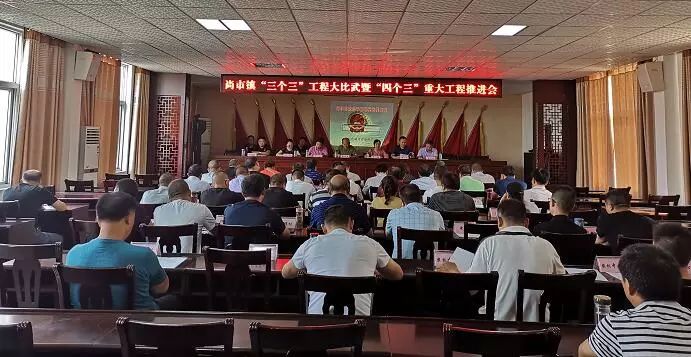 尚市镇召开全镇“三个三”工程大比武暨“四个三”重大工程推进会,并对各村的“三个三”工程开展情况进行现场观摩大比武。