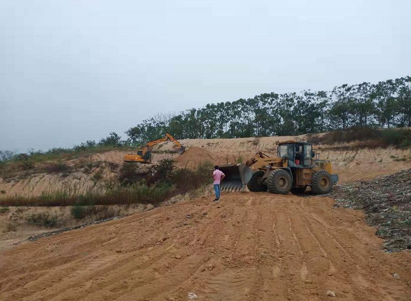 草店镇垃圾场按规范化要求重新开挖平台、复土。