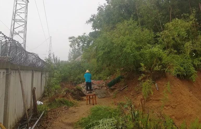 草店镇金锣山村冒雨拆除铁路边违建厕所。