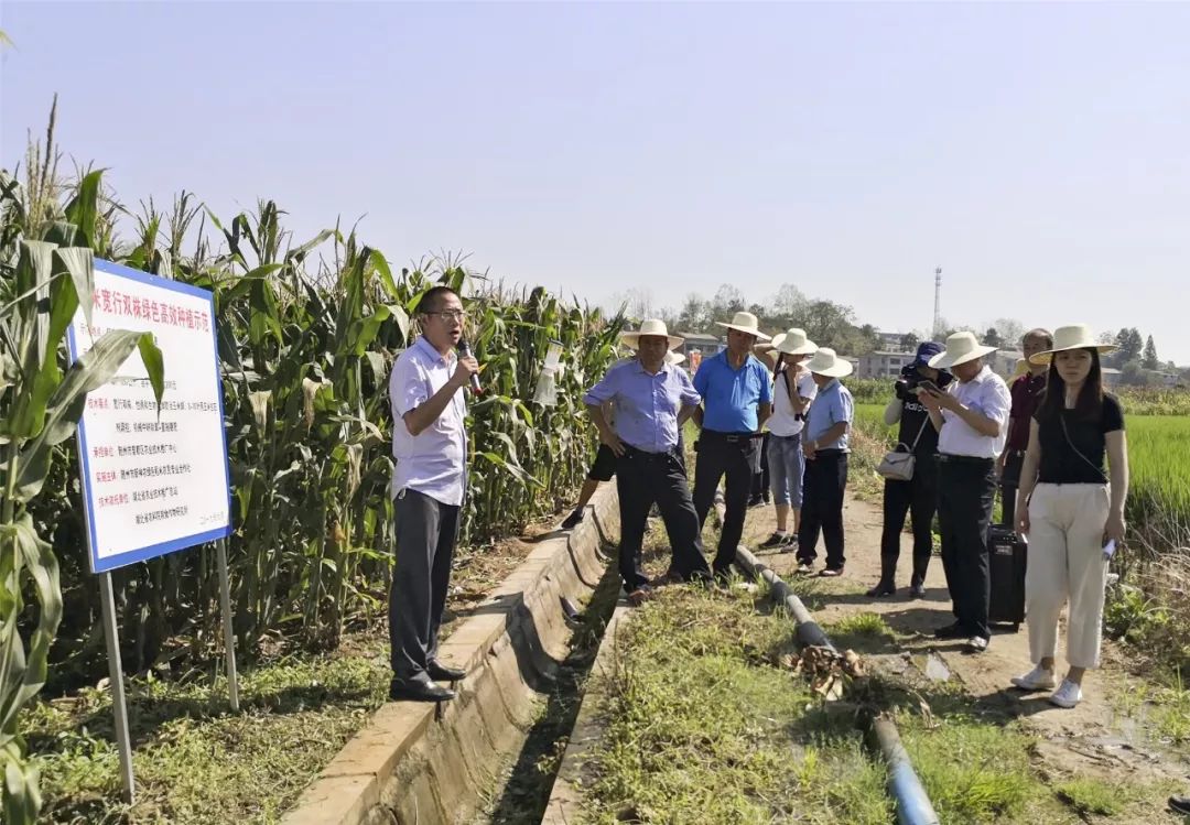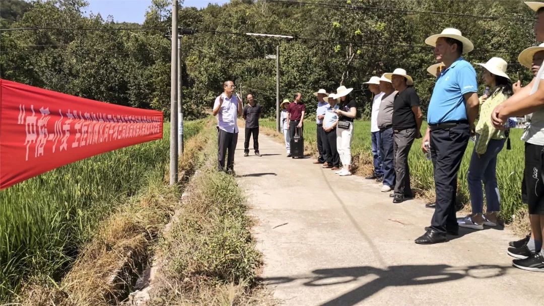 观摩内容包括中稻绿色高质高效示范、颚玉32宽行双株规划化种植,再生稻种植示范,中稻--小麦全程机械化绿色高质高效模式。这些实验示范是区农技推广中心和院区共建专家大院与种田大户合作,在大田种植的推广项目,如今,经过多轮实验示范,技术进入成熟期。