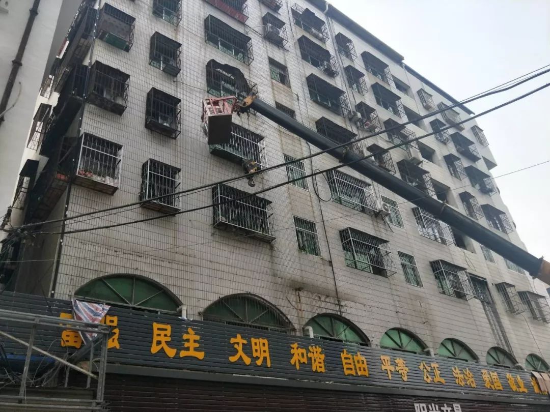 8月31日,聚玉街东段的四层楼外墙面已粉刷完毕,正在安装广告牌。