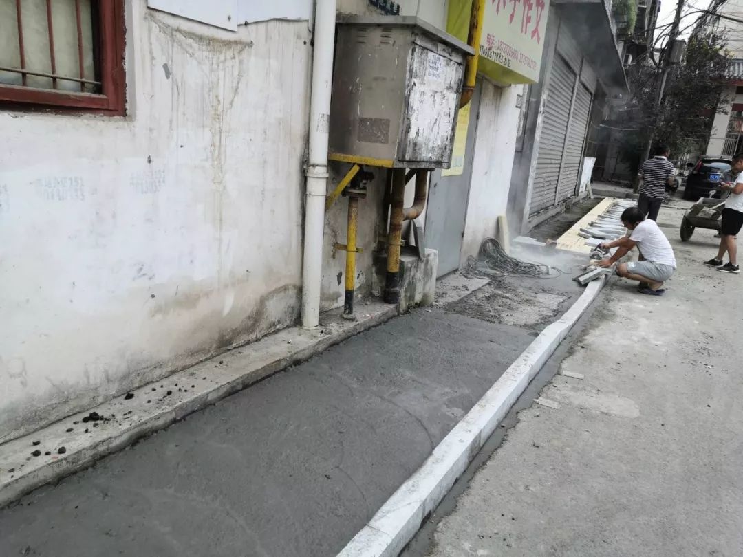8月31日,西城办事处九曲巷改造施工正在加快推进中,人行道地砖铺设的收尾工作预计今日完成。