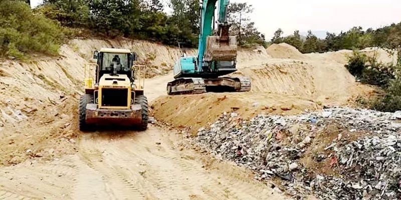 吴山镇对垃圾填埋场进行生态修复,当前正在进行覆土工程。