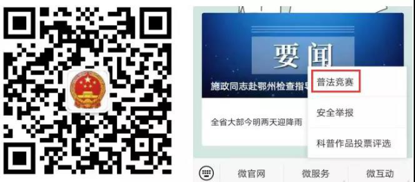 方法一:关注“湖北应急管理”微信公众号,点击“微互动 → 普法竞赛”,进入竞赛页面。