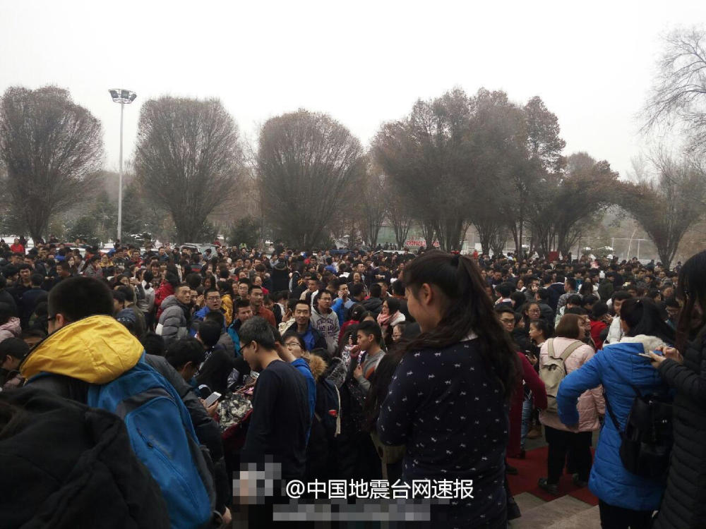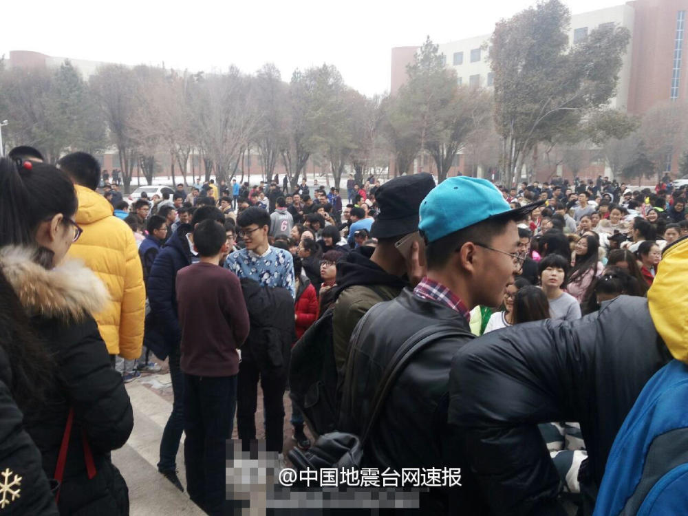 石河子震感强烈,民众到户外避险。