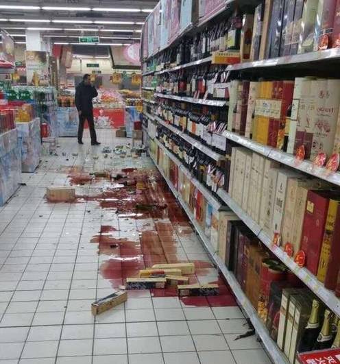昌吉一家超市内,物品跌落。