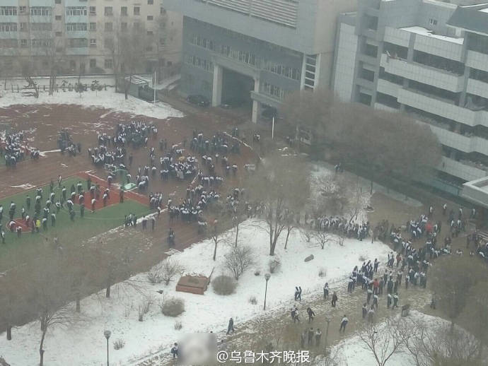 12月08日13时15分在新疆昌吉州呼图壁县(北纬43.83度,东经86.35度)发生6.2级地震,震源深度6千米。图为乌鲁木齐某小学快速疏散后画面。