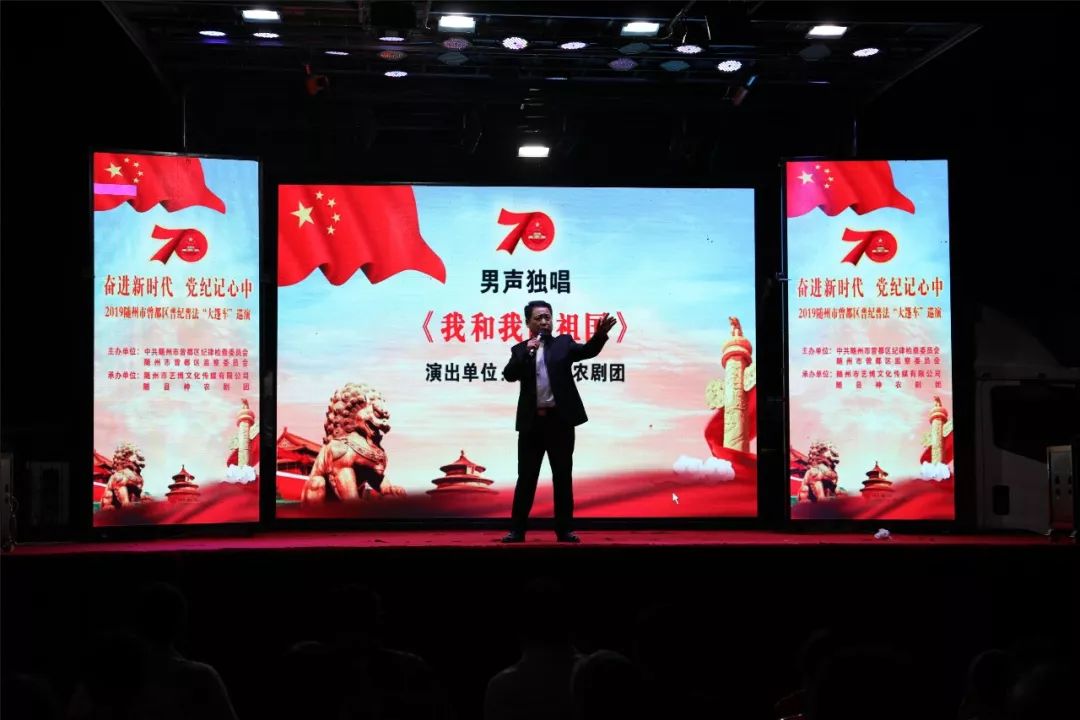 演出在红歌联唱中拉开帷幕,男生独唱《我和我的祖国》《我爱你,中国》,扫黑除恶情景剧《多行不义必自毙》,家庭助廉小品《阴差阳错》,扶贫廉政小品《如此扶贫》等精彩节目轮番上演,纪法知识互动问答将整场演出推向了高潮。