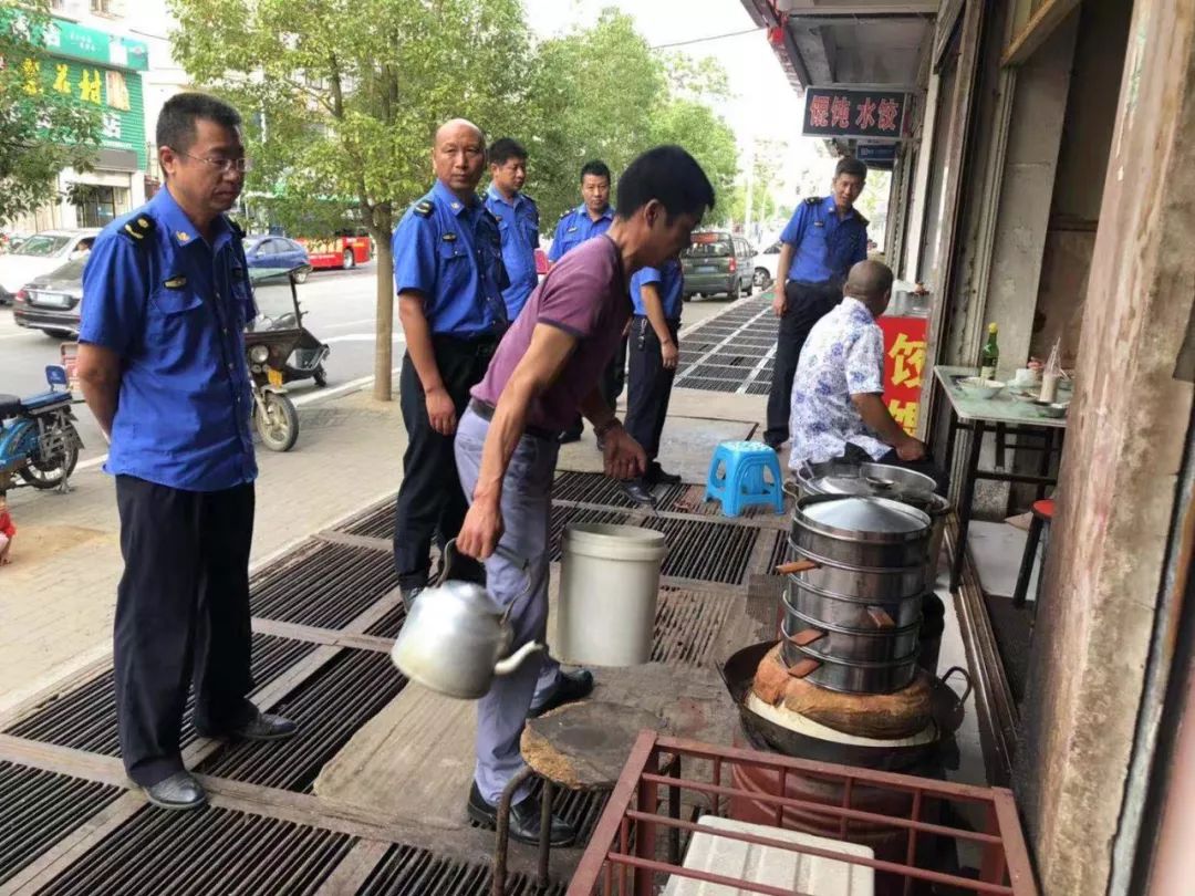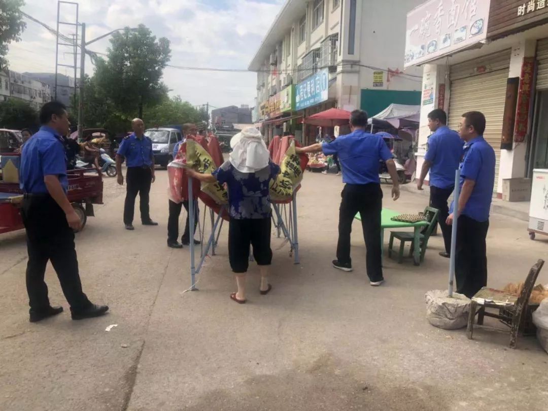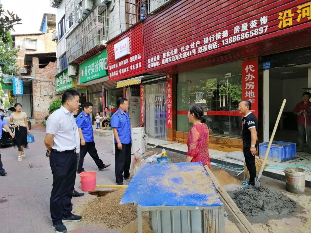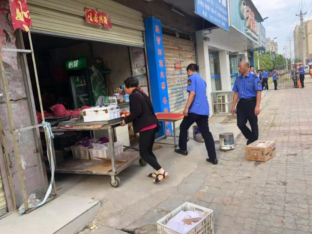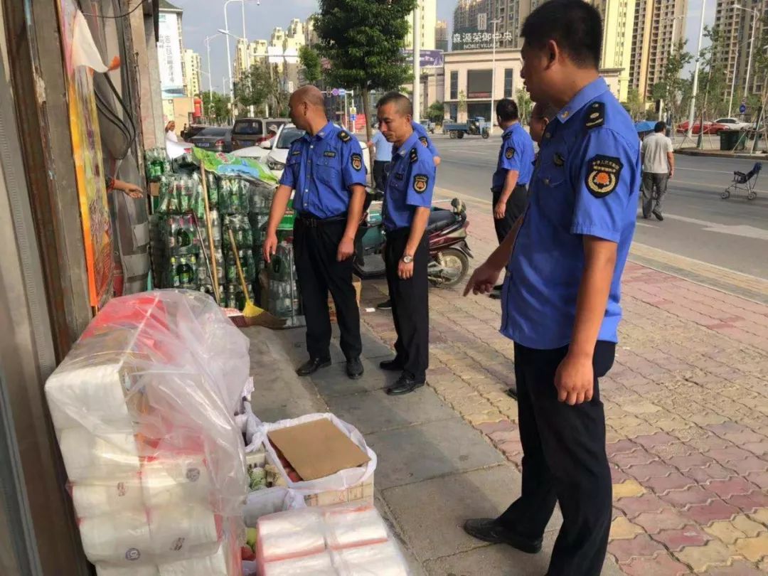 9月5日早,北郊办事处各社区联合城管执法队员,对主要路段出店经营、流动摊贩进行常态化整治,劝离占道经营8起。