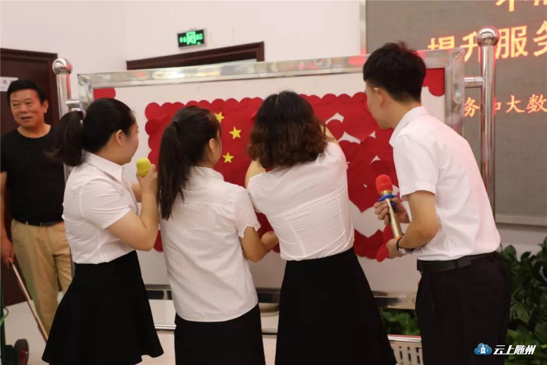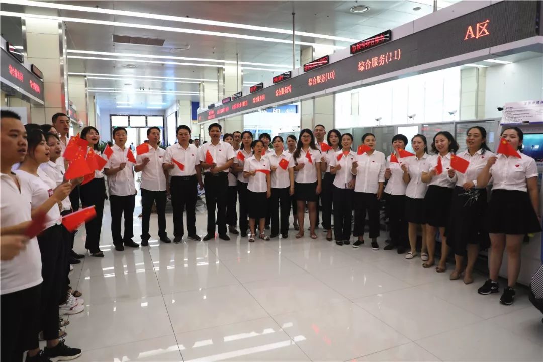在曾都区政务服务大厅内,《我和我的祖国》音乐响起,4名随州老干部活动中心老干部饱含激情地演唱。曾都区政务服务和大数据管理局机关全体干部职工和窗口工作人员,被温暖的旋律感染,纷纷融入到“快闪”活动中,一同演唱歌曲。