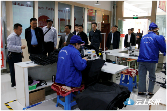 随州市人力资源和社会保障局副局长徐明成一行对生产的雨具产品赞不绝口
