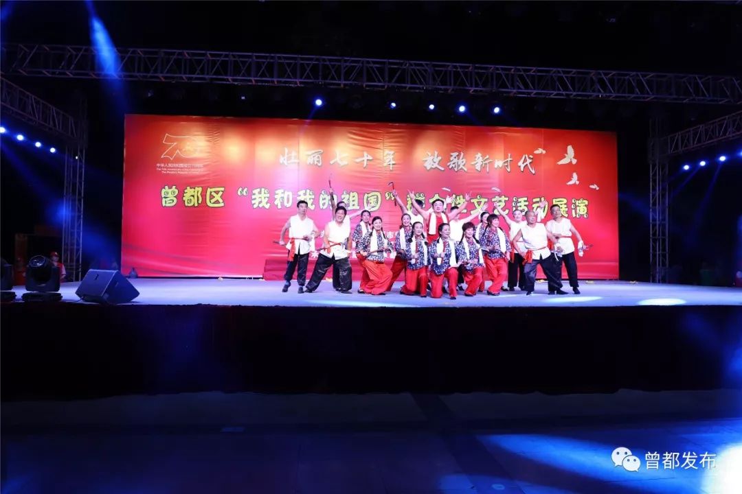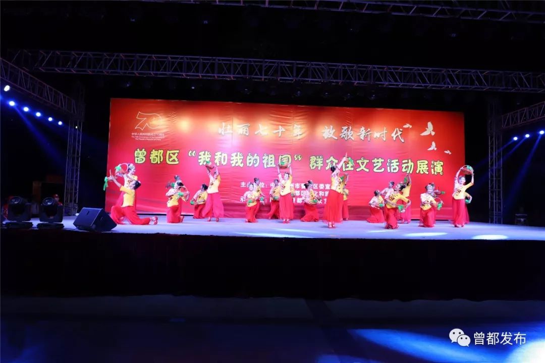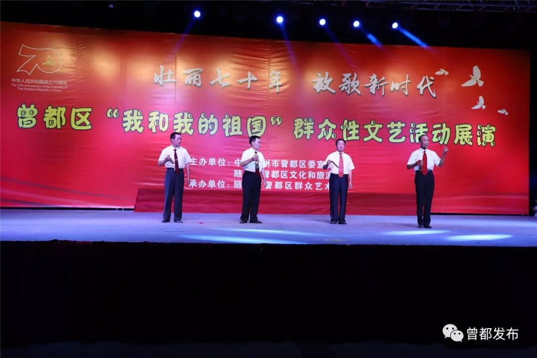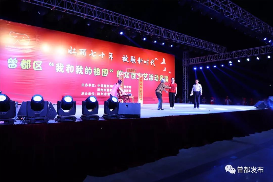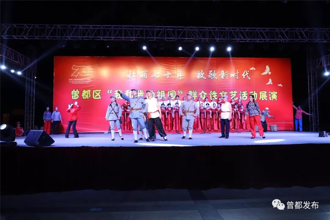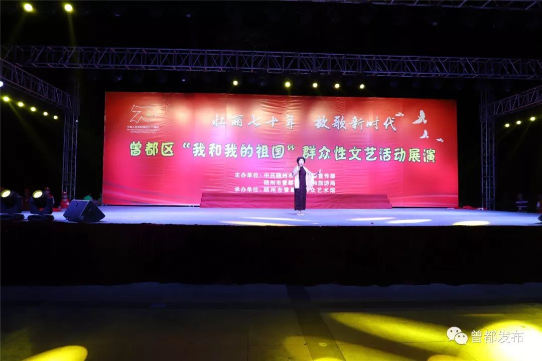 9月6日,神农公园星光闪烁,人声鼎沸。伴随着大合唱《没有共产党就没有新中国》嘹亮的歌声,由中共随州市曾都区委宣传部、随州市曾都区文化和旅游局主办,曾都区群众艺术馆承办的“壮丽70年 放歌新时代”曾都区“我和我的祖国”群众性文艺展演活动拉开序幕。