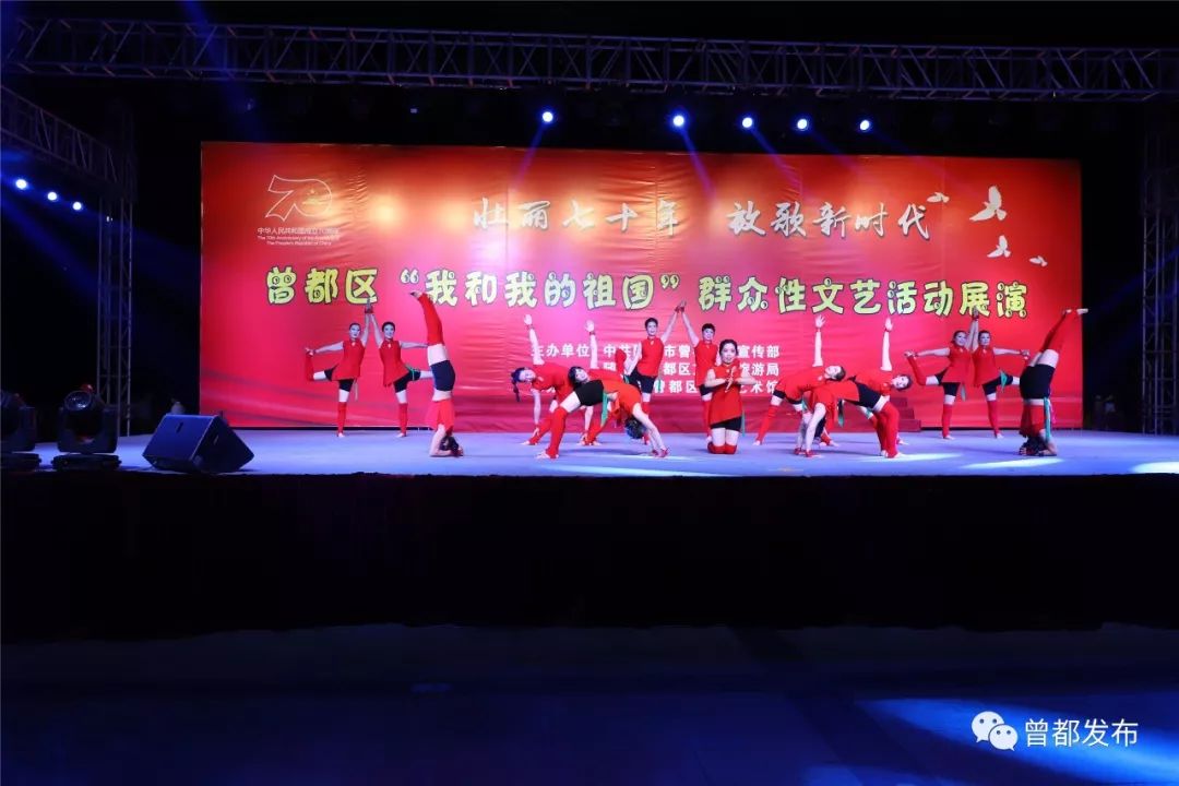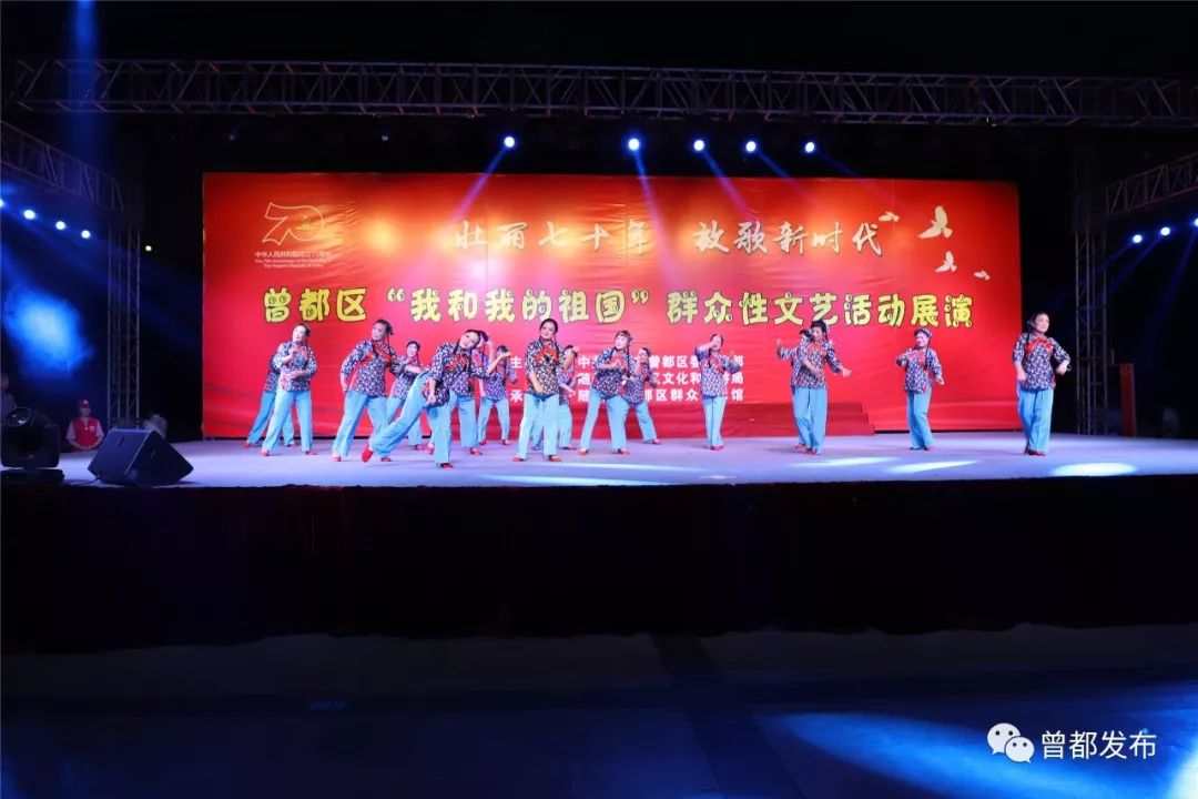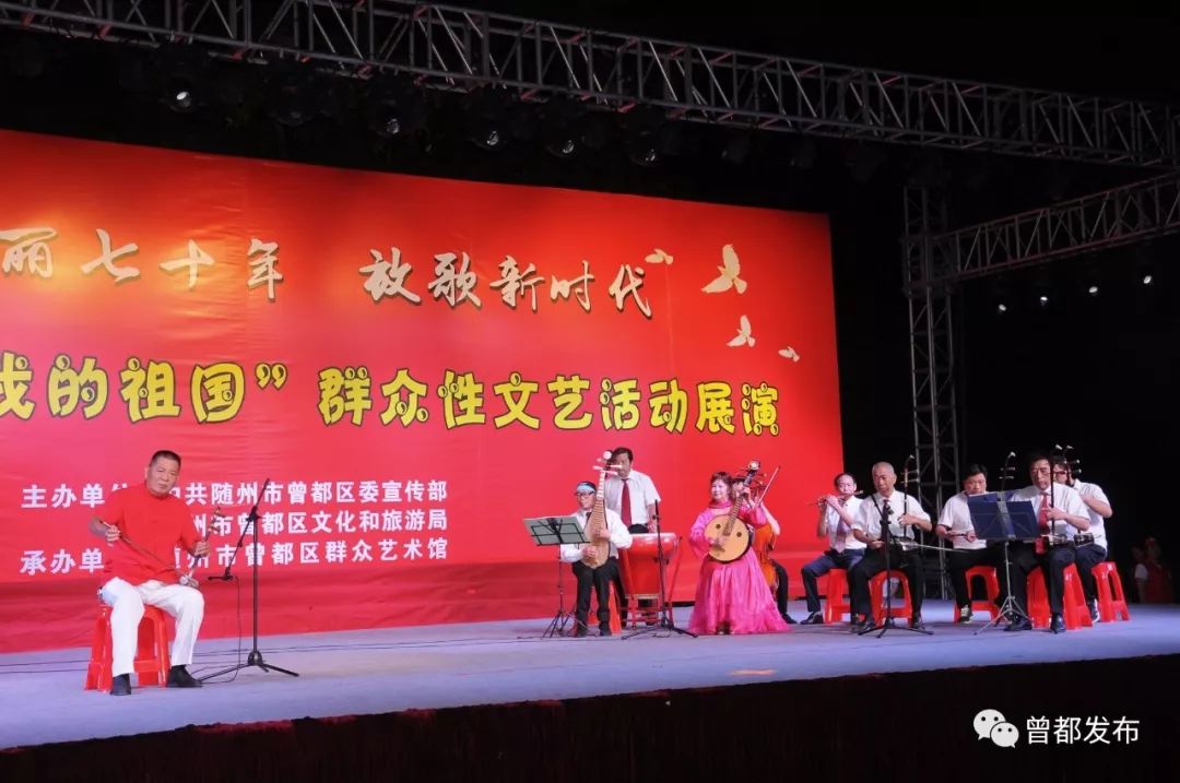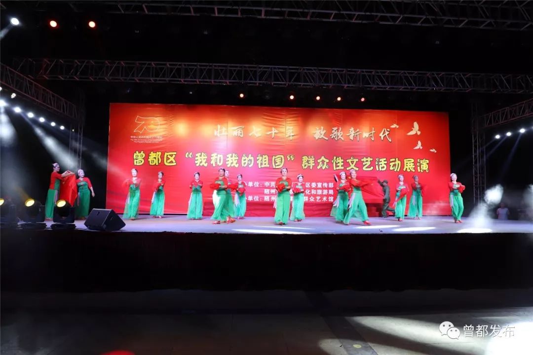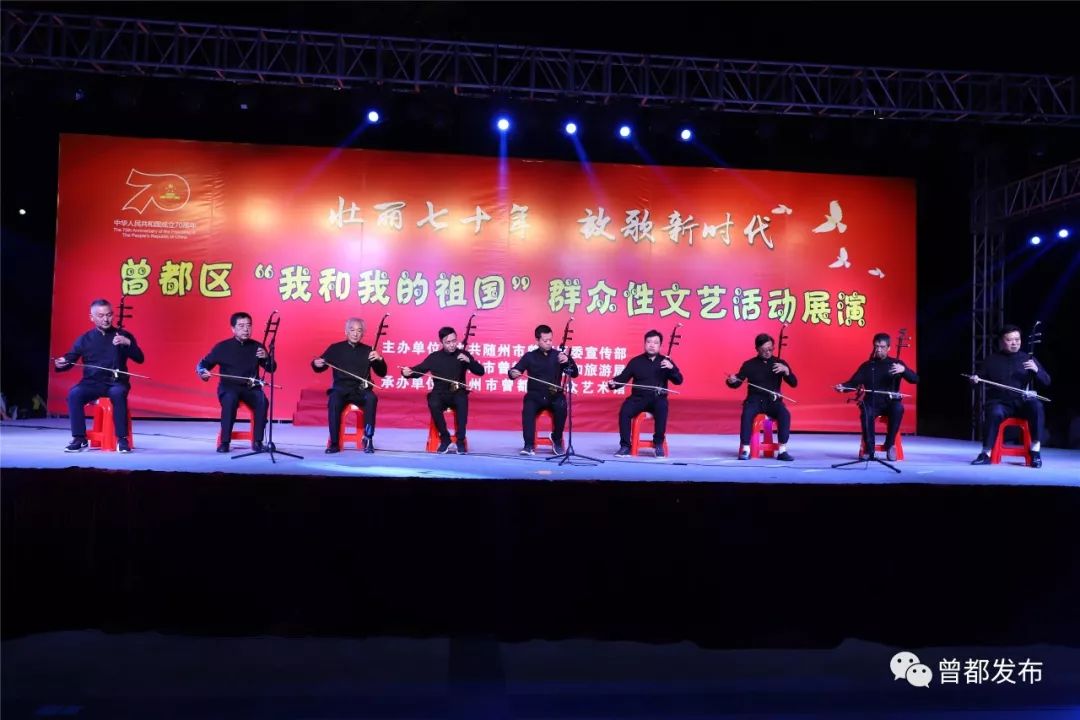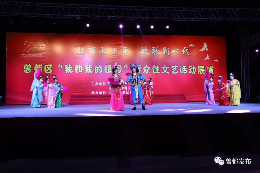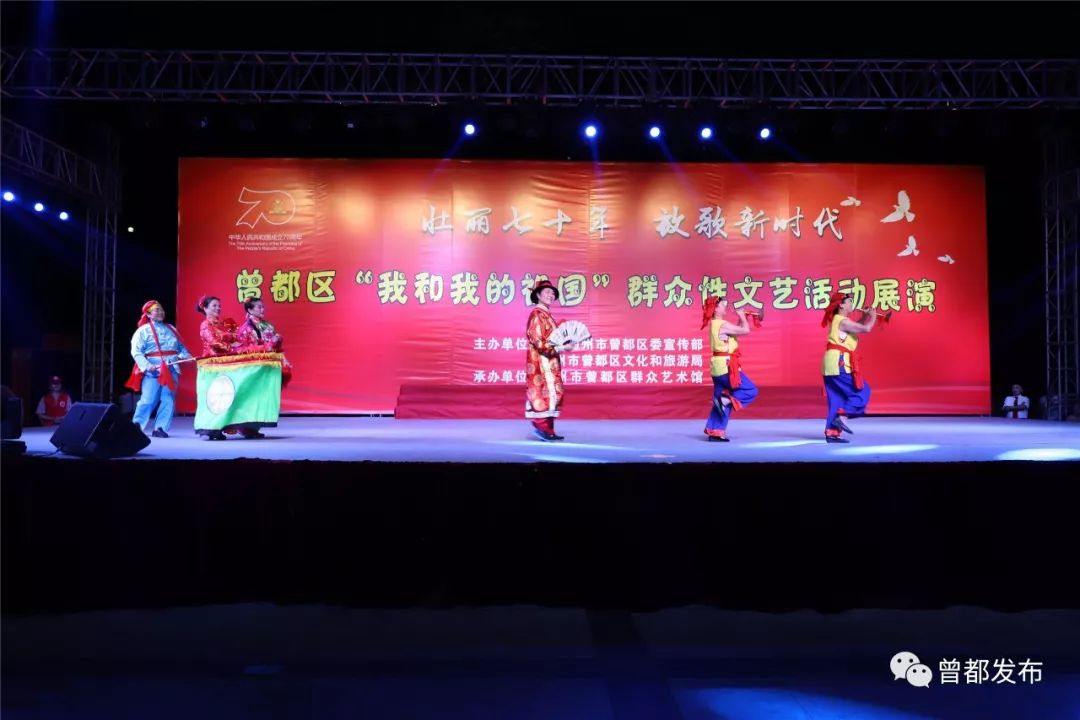 9月6日,神农公园星光闪烁,人声鼎沸。伴随着大合唱《没有共产党就没有新中国》嘹亮的歌声,由中共随州市曾都区委宣传部、随州市曾都区文化和旅游局主办,曾都区群众艺术馆承办的“壮丽70年 放歌新时代”曾都区“我和我的祖国”群众性文艺展演活动拉开序幕。