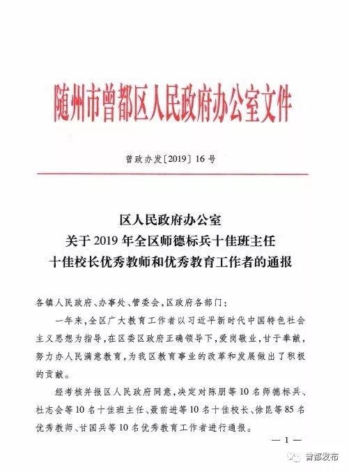 感恩教师节 古之学者必有师 师者,所以传道受业解惑也 时值金秋九月 又一年教师节将至 为庆祝第35个教师节 曾都区对教育战线先进个人进行通报 看看都有谁? 来源:曾都发布 编辑:毛小月 审核:魏云峰 陈凡