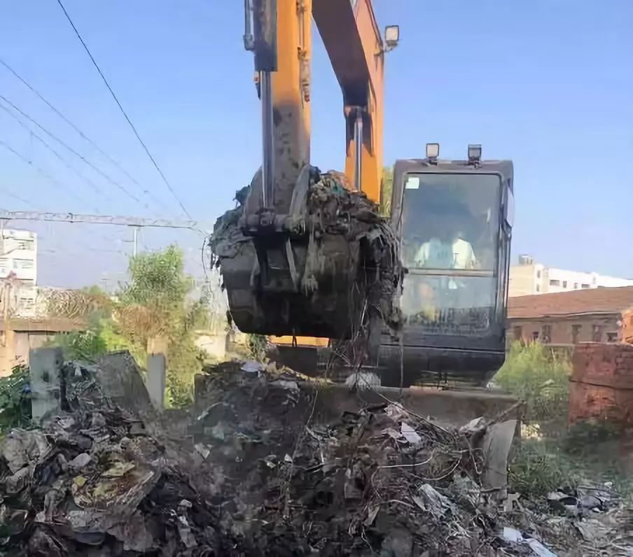 唐县镇高质量整治火车站站区工务段多年累积的生活垃圾,小机械加人工作业,精细化清理。
