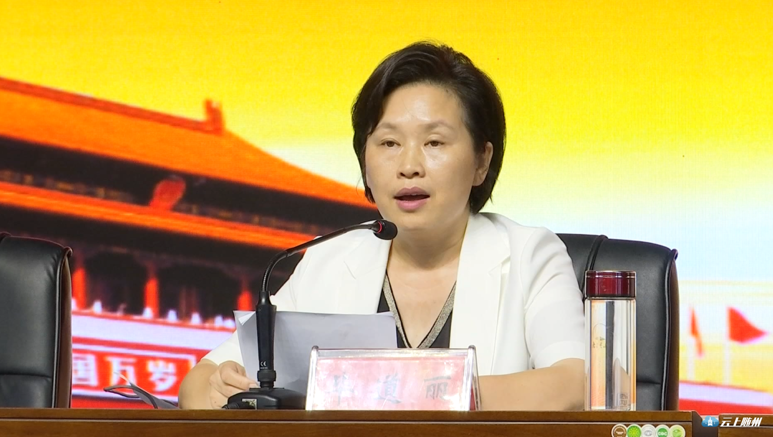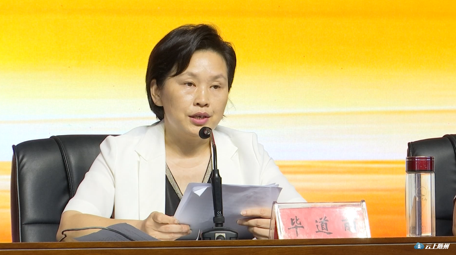 随县县委书记毕道丽讲话,随县县委副书记、县长陈兴旺主持会议。随县人大常委会主任余先珍、炎帝故里风景名胜区党工委书记冯晓蓉,随县领导刘炳坤、廖志文、廖富国、王笠、梅行保参加会议。