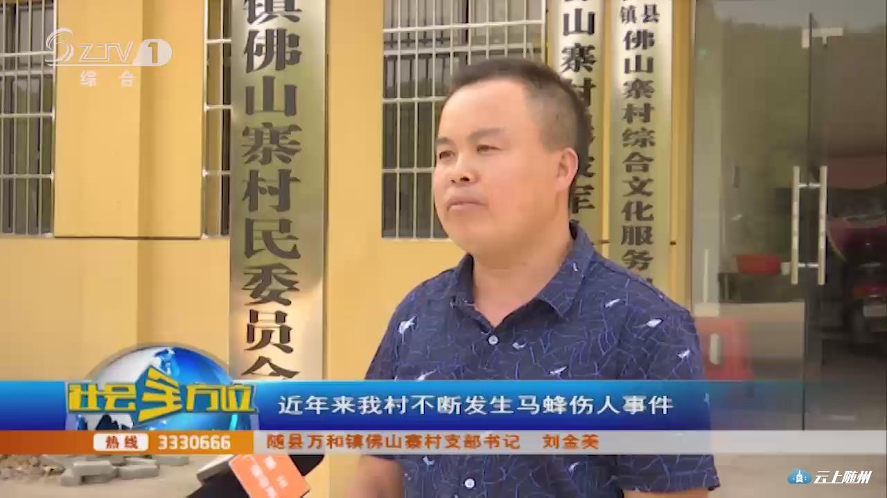 【采访】随县万和镇佛山寨村支部书记 刘金美:近年来我村不断发生马蜂伤人事件,我们积极组织人手,对村主干道两边以及人员密集场所的马蜂窝进行消除,消除安全隐患,为村民营造安宁的生活环境。