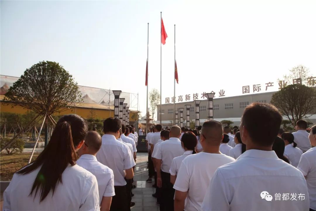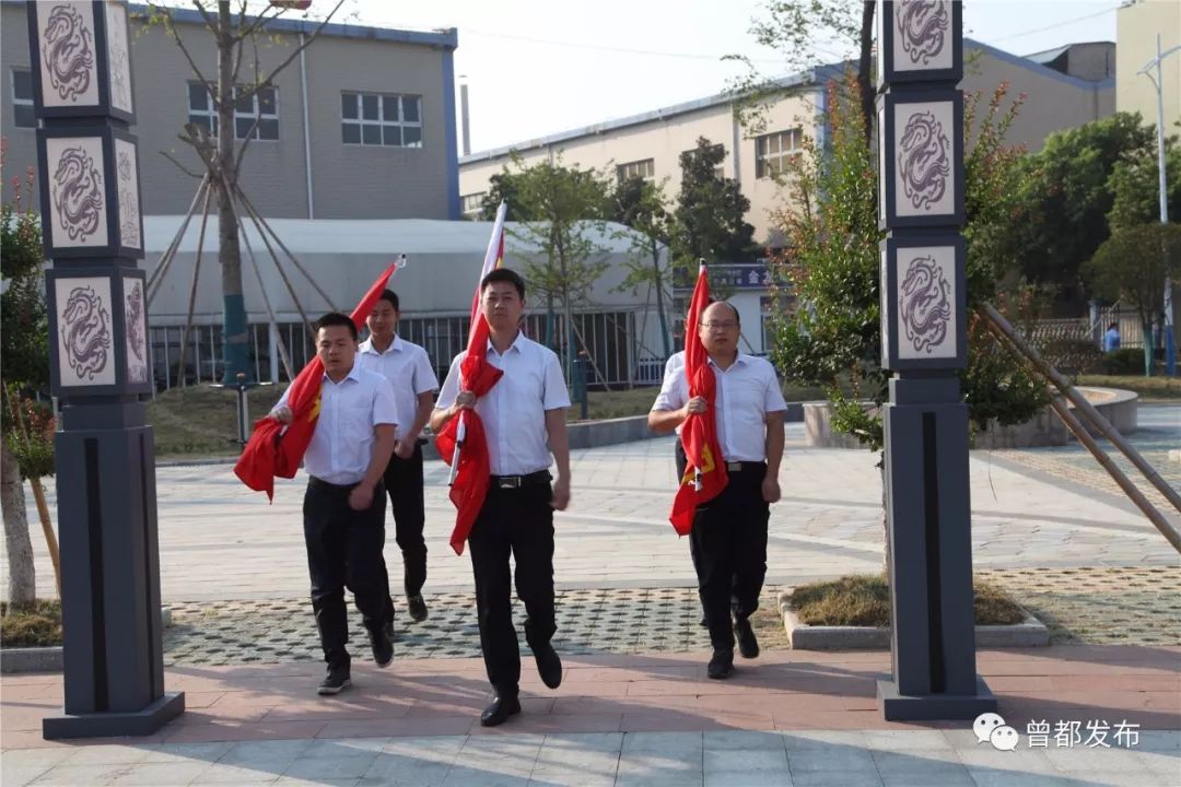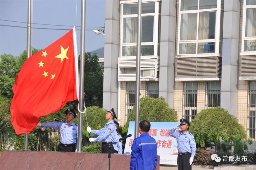在新兴全力,曾都区科经局全体干部职工与企业员工一起举行了升国旗仪式,高唱国歌,抒发对祖国的热爱。活动中,宣讲了国旗、国徽和国歌的历史及精神内涵。