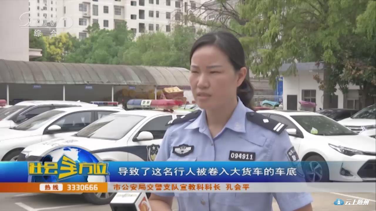 【采访】市公安局交警支队宣教科科长 孔会平:从当时的视频监控来看,行人应该处于大货车司机的视角盲区,导致了这名行人被卷入大货车的车底,当场死亡的交通事故。