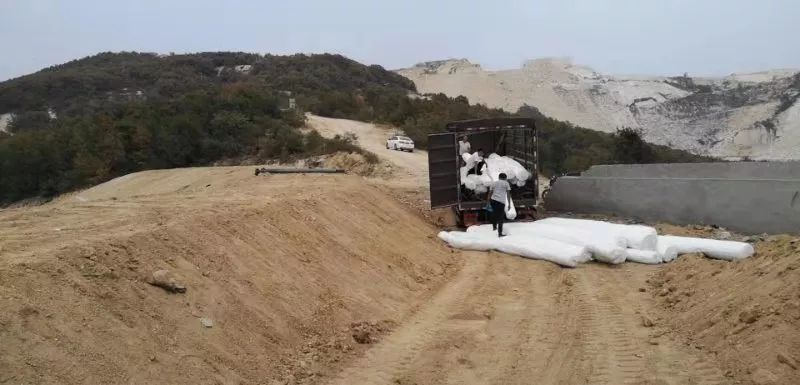 小林镇垃圾填埋场封场覆膜己完工,今天开始覆土。