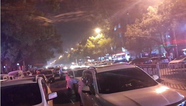 小编今晚路过舜井大道南端时看到这样的场景。我的神啊!简直惊呆了!密密麻麻的停满了车,宽阔的六车道瞬间变成了两车道。路过的司机说,有些路段的车停的太靠外了,只能小心翼翼的走。小编看到有些市民甚至在没有停车的马路上踢起了毽子,真为他们捏一把汗。