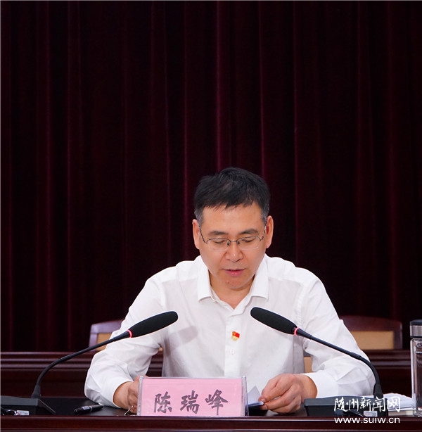 陈瑞峰强调,要加强组织领导,切实担负起开展主题教育的政治责任,各级党委(党组)要严格落实主体责任,党组织主要负责同志要主动扛起第一责任人职责,坚持以上率下,防止压力递减,一级做给一级看、一级带着一级干,层层立标杆、作示范,形成强大的引领力量,带动广大党员干部积极参与到主题教育中来;加强督促指导,坚决同党中央安排部署对表对标,同时结合随州实际,丰富方式方法,增强活动的针对性实效性,务求取得实际效果、解决实质问题;注重开门搞教育,敞开倾听民意之门,敞开为民服务之门,敞开群众评判之门,增强主题教育参与度和吸引力;营造浓厚氛围,注重典型引路,结合庆祝新中国成立70周年主题宣传,选树一批坚守初心使命、敢于担当作为的先进典型,引导广大党员干部见贤思齐、奋发进取;加强统筹推进,力戒形式主义、官僚主义,把主题教育融入到贯彻党中央决策部署和省委工作要求的具体实践之中,融入到当前正在推进的各项重点工作之中,做到主题教育和当前工作“两不误”“两促进”,奋力谱写建设品质随州、实现高质量发展的新篇章。