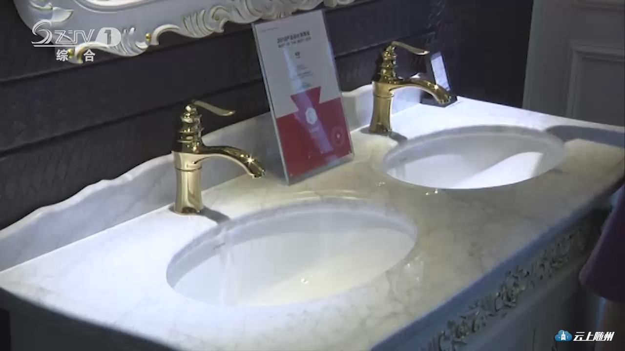 【采访】安华卫浴红星店负责人 郭静:我们的双盆设计,这边可以使用,另一边也能同时使用,所以这是一项比较人性化的设计。第二是下面的柜子运用了实木雕花工艺,并且上面描有金边。这个能体现主人家使用的一种品位,而且非常耐用。再说一下上面的细节,搭配的水龙头也是非常关键的。水龙头起到了画龙点睛的作用。我们的这款水龙头是金色的,这个金色和刚刚的描金相呼应,是非常协调的。