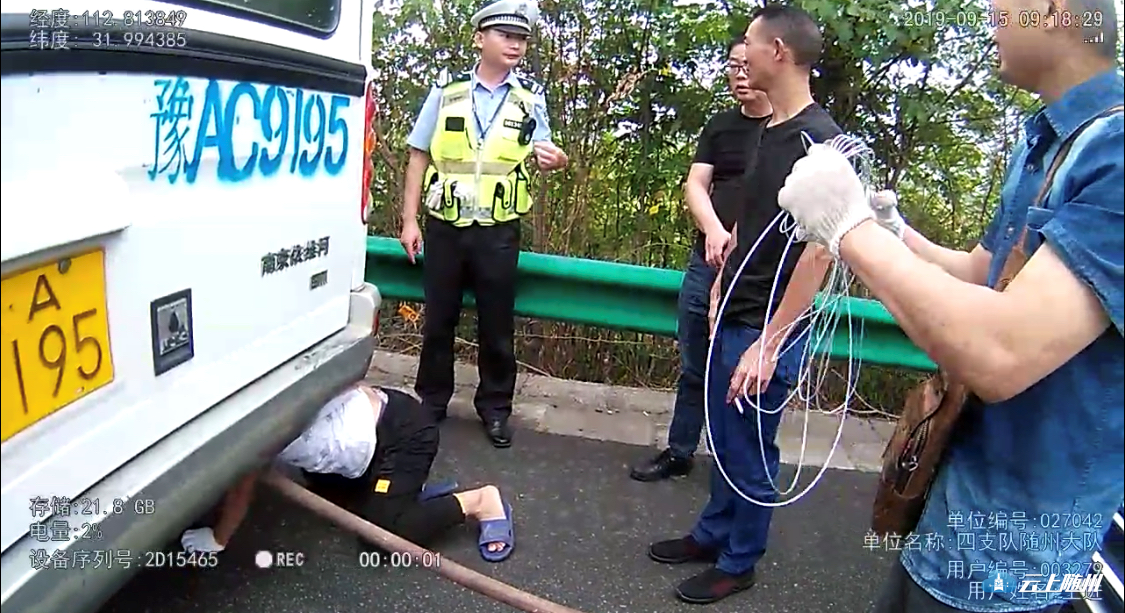 9月15日,高警随州大队民警在辖区福银高速公路进行路面保畅,当行驶至1135KM处时,只见前方应急车道内停着两台依维柯客车,不时有人从车旁穿行,而车后仅仅20M远处设置一个警示标志,正好今天是返程高峰,路面车流量较大,过往车辆纷纷躲避,民警见状立即将车辆停在后方警戒,同时上前查看情况。