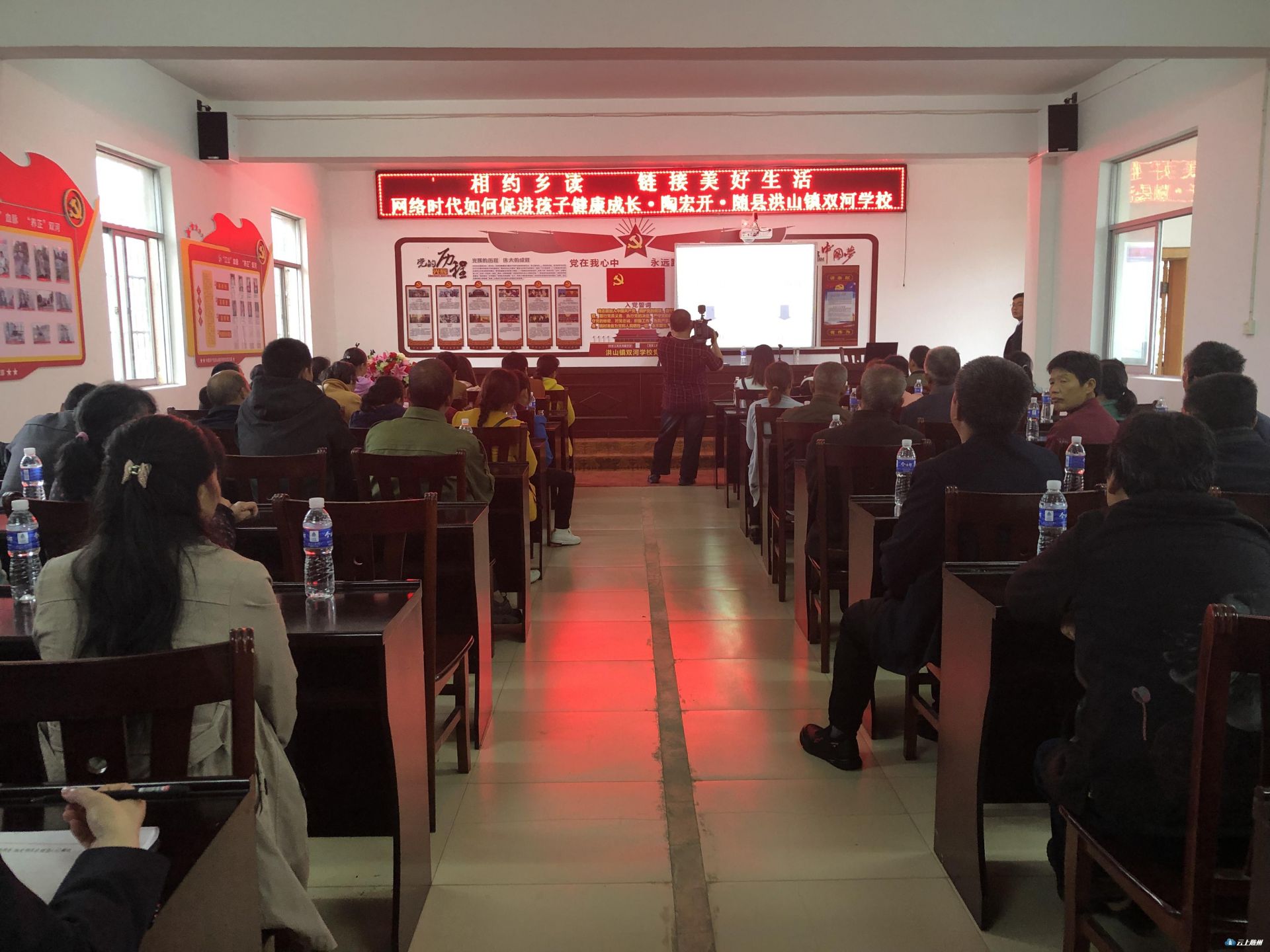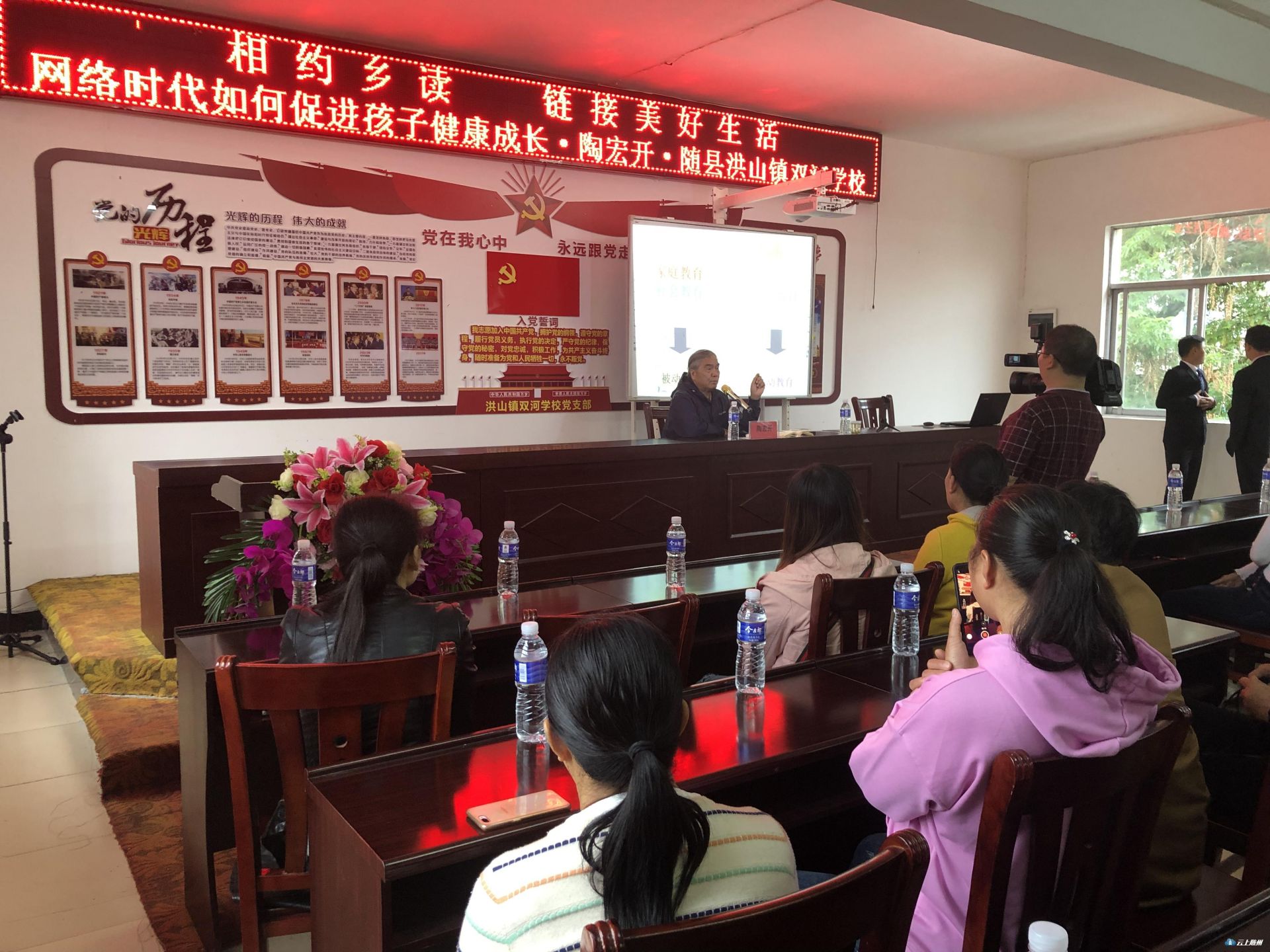 今天上午,湖北省图书馆“相约乡读”阅读季活动为随县洪山镇双河学校的家长和孩子们带去了丰富的开学礼——湖北省素质教育研究会总顾问陶宏开和学术委员会专家顾问冯兰老师应邀开展了精彩又富有教育意义的讲座。陶教授从家庭和学校的教育出发,与家长和老师们分析了网络时代如何促进孩子健康成长。冯教授声行并茂的向孩子们展示了不同场合的文明礼仪,引导孩子们做知书达理的小学生。
