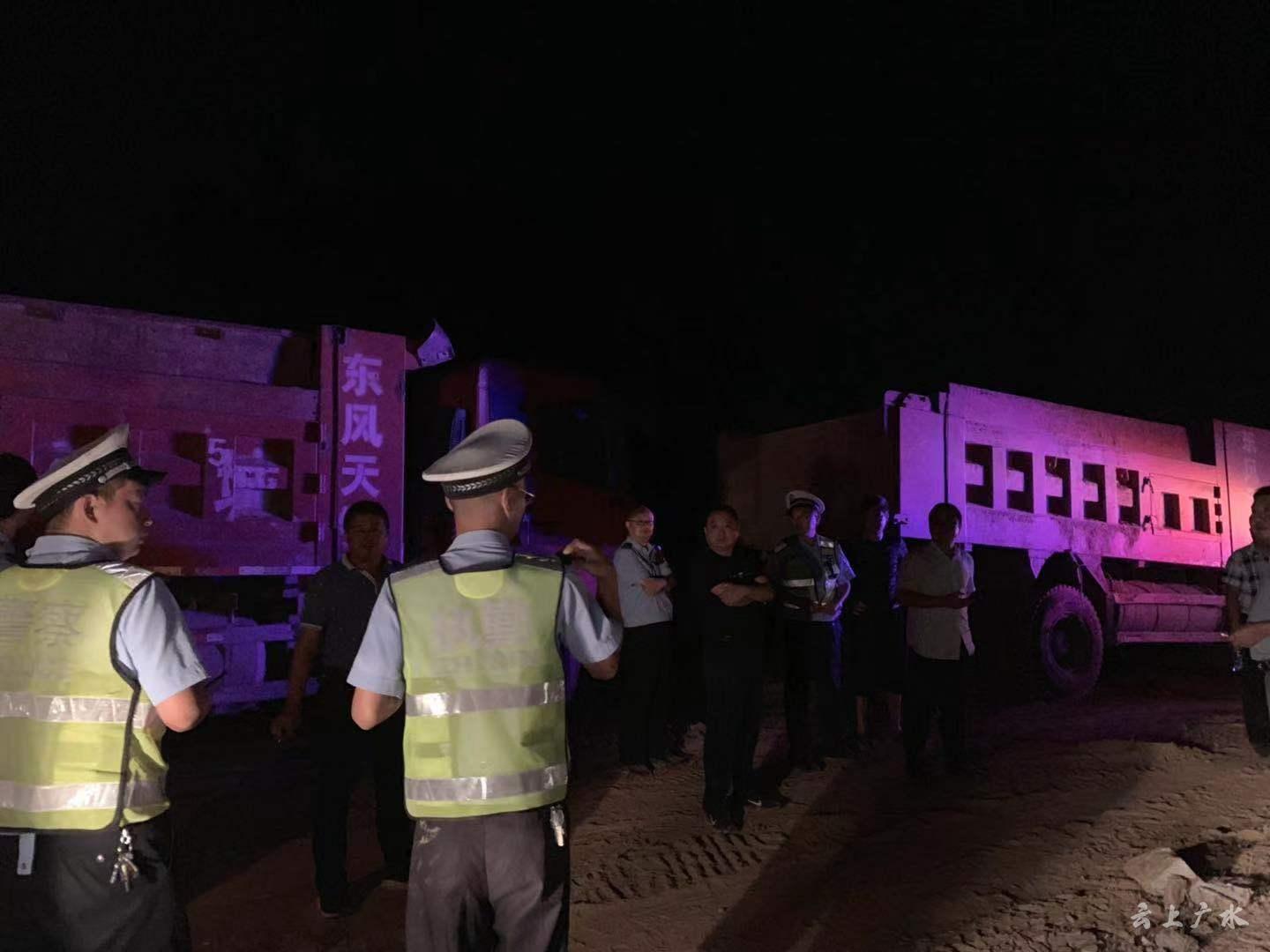 9月15日21时许,长岭镇政府接群众举报称:“有10多台大型货车到长岭镇徐寨村一山场准备偷土,破坏山林。”接到举报,长岭镇政府立即组织广水市公安局治安大队、镇派出所、长岭交警中队、长岭国土资源所等部门50余人组成专班,赶到现场联合执法。至23时许,执法专班虽未抓到偷土的现形,却查获8台非法改装货车。