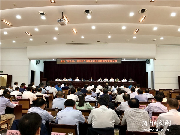 9月18日,全市“迎大庆、保军运”平安稳定工作会议暨市安委会全会召开,市委书记陈瑞峰强调,要把思想和行动统一到党中央和省委对当前形势的科学判断和决策部署上来,增强政治敏锐性,强化措施、化解矛盾、防范风险,全面筑牢各领域安全防线,全力做好“迎大庆、保军运”平安稳定各项工作,切实为新中国成立70周年大庆和第七届世界军人运动会顺利举行,营造平安稳定的社会环境。