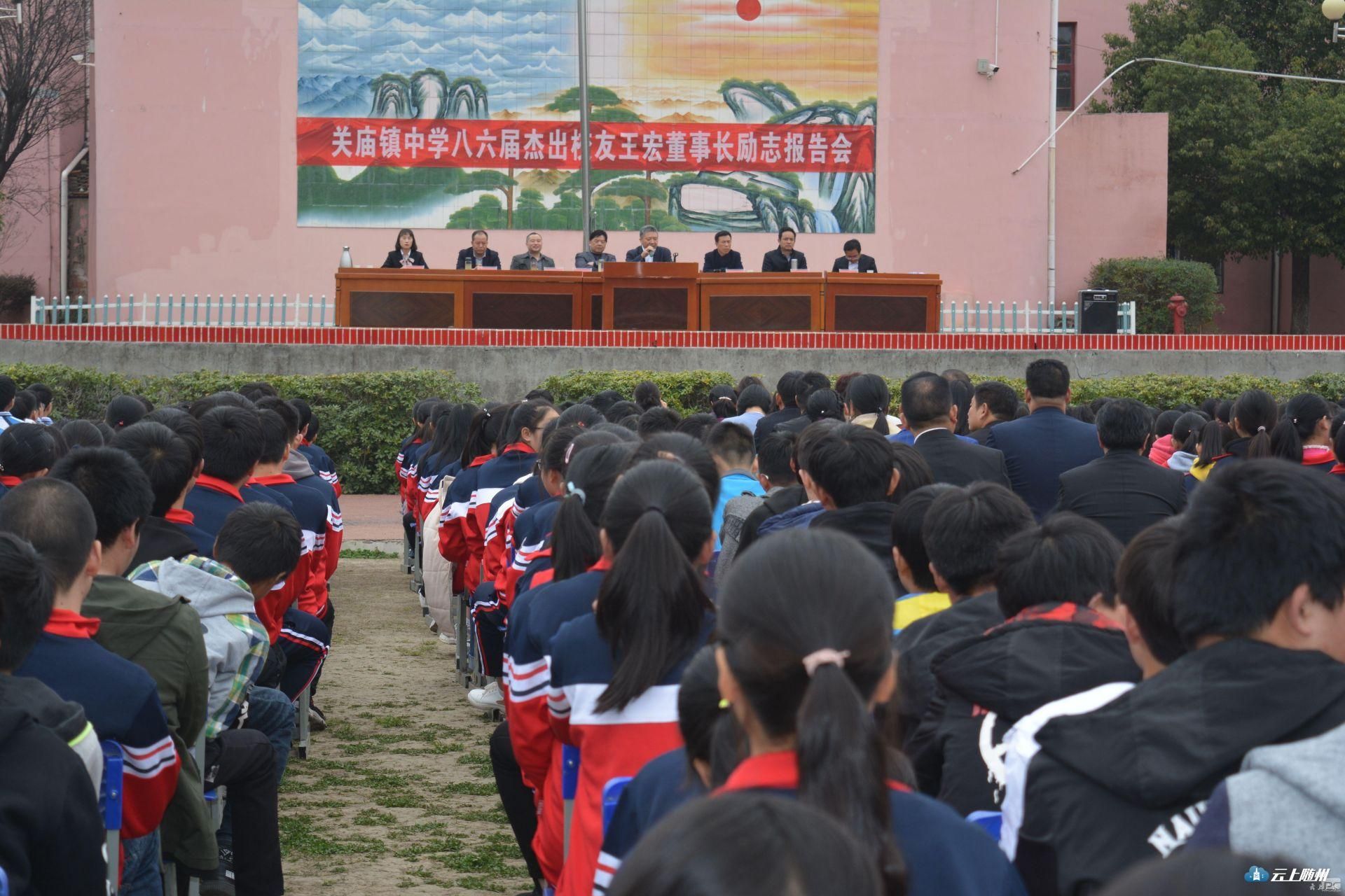 广水籍在外爱心人士情系桑梓、回报家乡,86届校友王宏每年捐赠10万元,连续6年用于奖励关庙镇优秀教师。88届校友卢书平主动与母校联系,成立圆梦助学奖学金基金会,每年捐资10万元,连续捐赠5年,支持母校贫困学子圆梦。