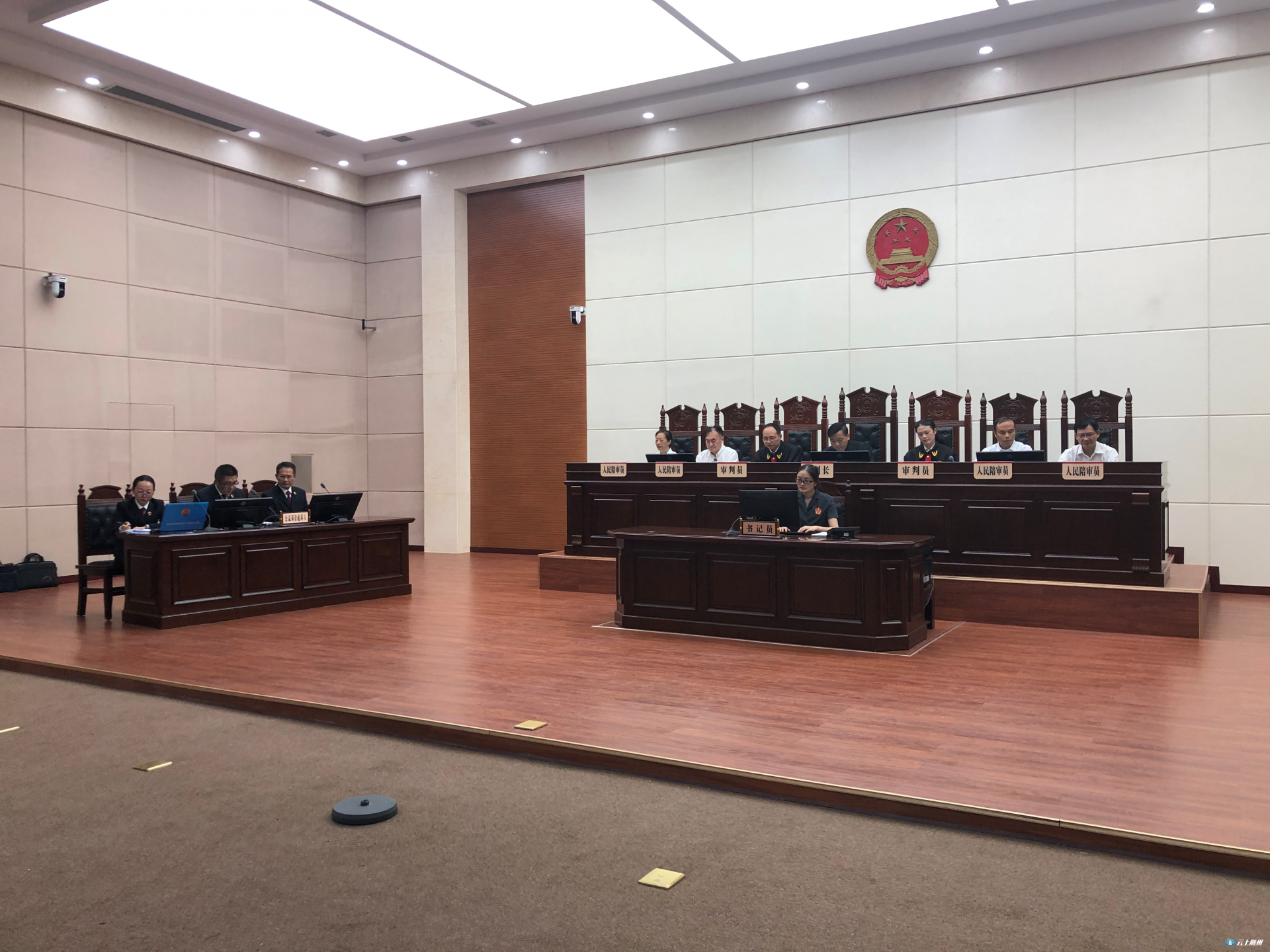 9月25日上午9时,随州中院依法由三名法官和四名人民陪审员组成七人合议庭对该案进行了公开审理,并通过法院直播网进行了现场直播,被告章某到庭参加诉讼。在审判长李海运副院长的主持下,公益诉讼起诉人和被告经过有序的举证、质证、辩论及最后陈述。