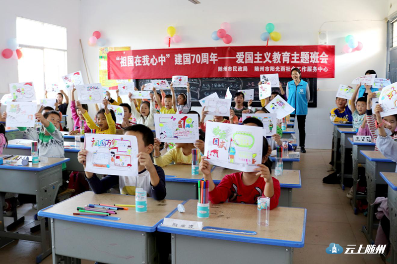 为庆祝中华人民共和国成立70周年,激发学生的爱国情感和民族自豪感,让学生体会到祖国的发展强大与自己息息相关。2019年9月20日,随州市阳光雨社会工作服务中心联合何店镇小学在四年级二班开展了“祖国在我心中”建国70周年爱国主义教育主题班会。